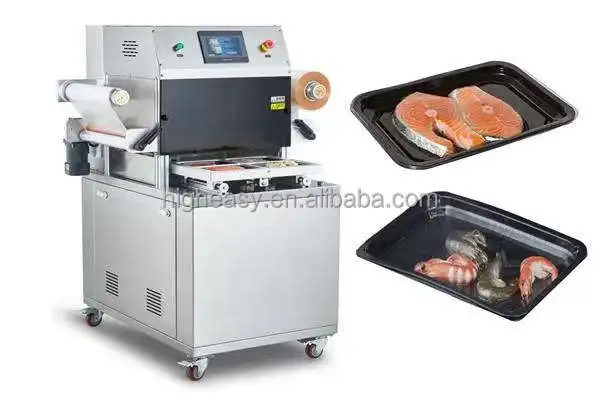Semi-Automatic Rectangle Wood Tray Sealer Machine for Ready-to-Eat Food Bags with Bearing for Vegetable Fruit Meat and Foil Lid